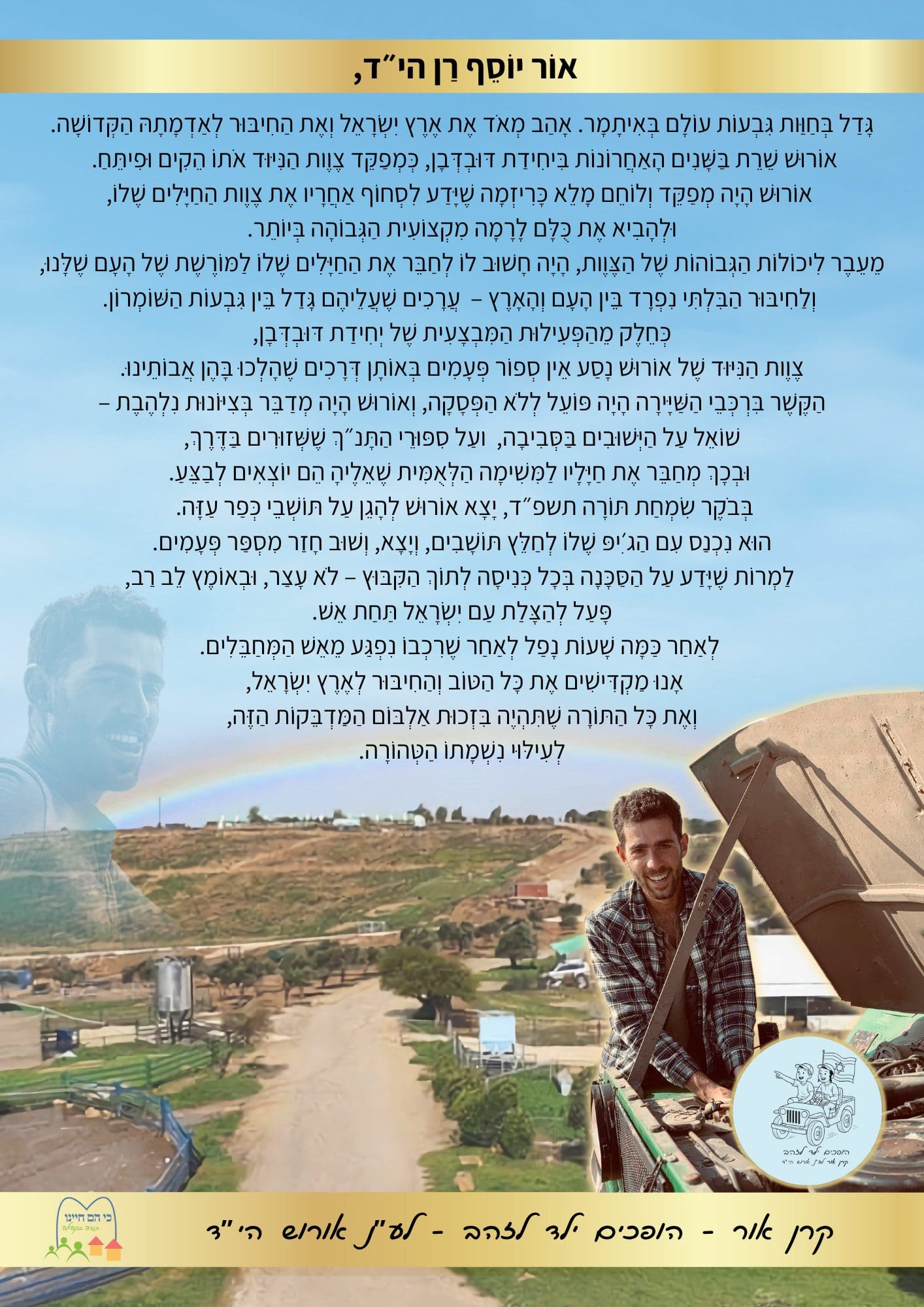 התרומות שלכם נקלטות בחשבון של העמותה, ומצטרפות לפעילות הענפה ב15 מסניפיה, לכ-1000 ילדים וילדות המשתתפים בפעילות. כל הלימוד והפעילות הטובה שתגדל בזכות תרומתכם – כולה מוקדשת לעילוי נשמתו של אורוש הי"ד.