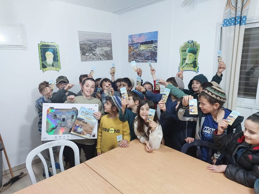 ב. מדבקות עגולות למשניות אורים: ילד אחד סיים את כל 10 המדבקות וקיבל רחפן. יש עוד 2 רחפנים. מי יזכה בהם?